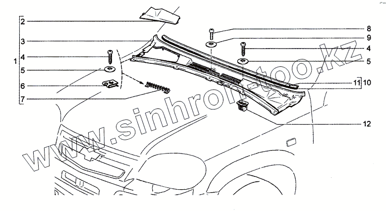 Каталог запасных частей к технике: ВАЗ Chevrolet Niva 1.7. Накладка облицовочная ветрового стекла