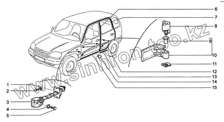 Каталог запасных частей к технике: ВАЗ Chevrolet Niva 1.7. Навеска боковых дверей и уплотнители