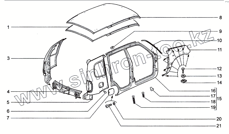 Каталог запасных частей к технике: ВАЗ Chevrolet Niva 1.7. Панели кузова (34, 55)