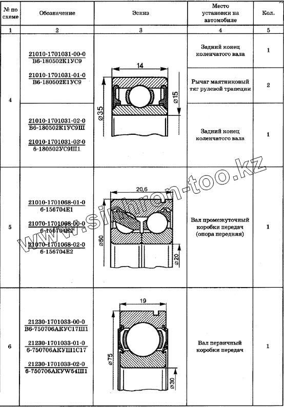 Каталог запасных частей к технике: ВАЗ Chevrolet Niva 1.7. Подшипники № 1