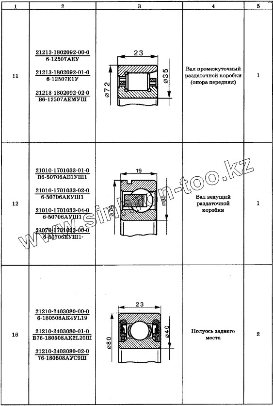 Каталог запасных частей к технике: ВАЗ Chevrolet Niva 1.7. Подшипники № 3