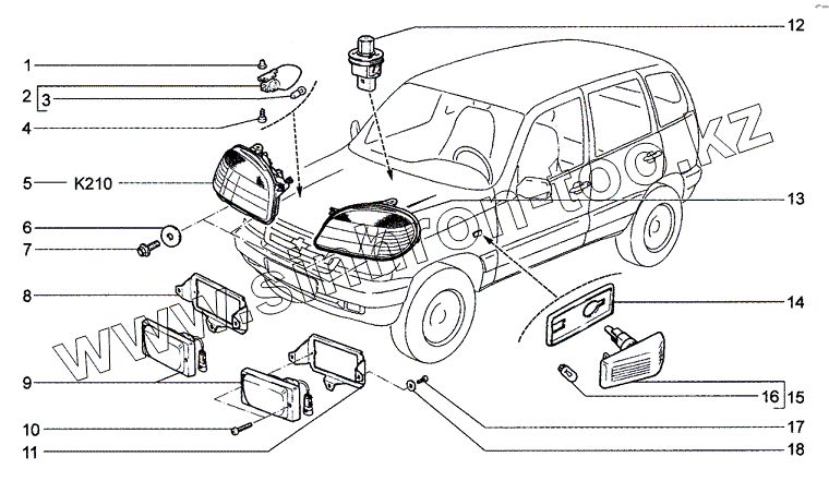 Каталог запасных частей к технике: ВАЗ Chevrolet Niva 1.7. Приборы световые передние