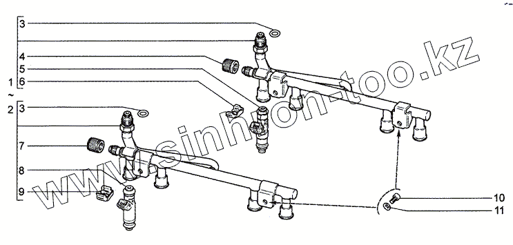 Каталог запасных частей к технике: ВАЗ Chevrolet Niva 1.7. Рампа и форсунки
