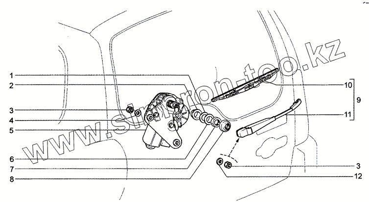 Каталог запасных частей к технике: ВАЗ Chevrolet Niva 1.7. Стеклоочиститель задний