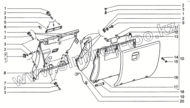 Каталог запасных частей к технике: ВАЗ Chevrolet Niva 1.7. Ящик вещевой