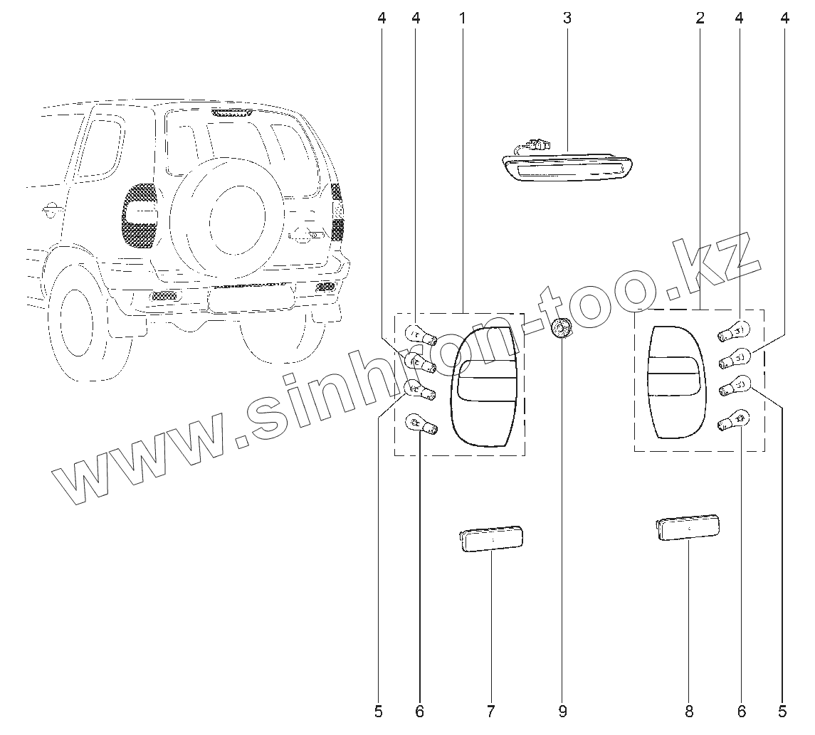 Каталог запасных частей к технике: ВАЗ Chevrolet Niva. Фонари задние (до 03.2009)