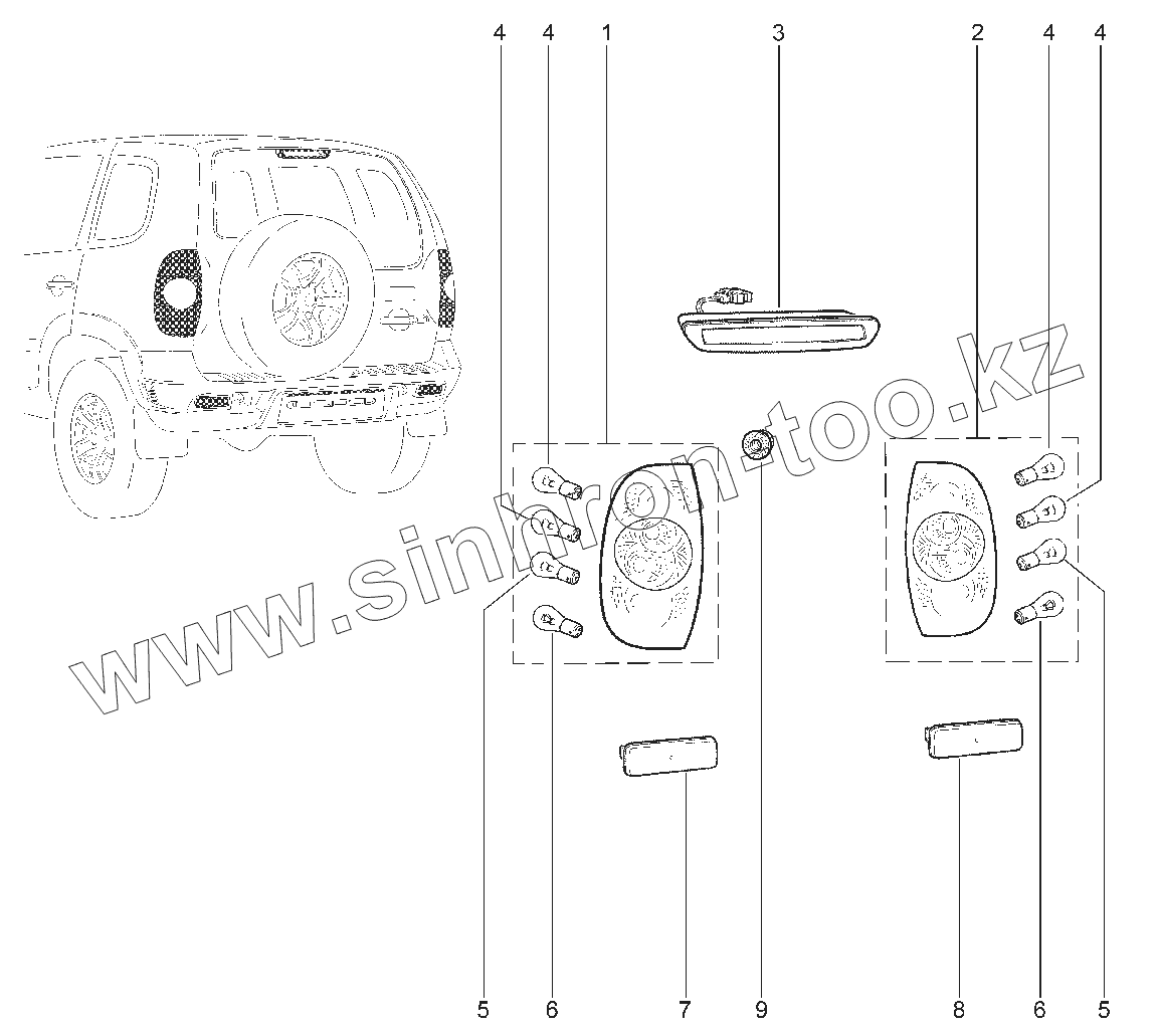 Каталог запасных частей к технике: ВАЗ Chevrolet Niva. Фонари задние (с 03.2009)