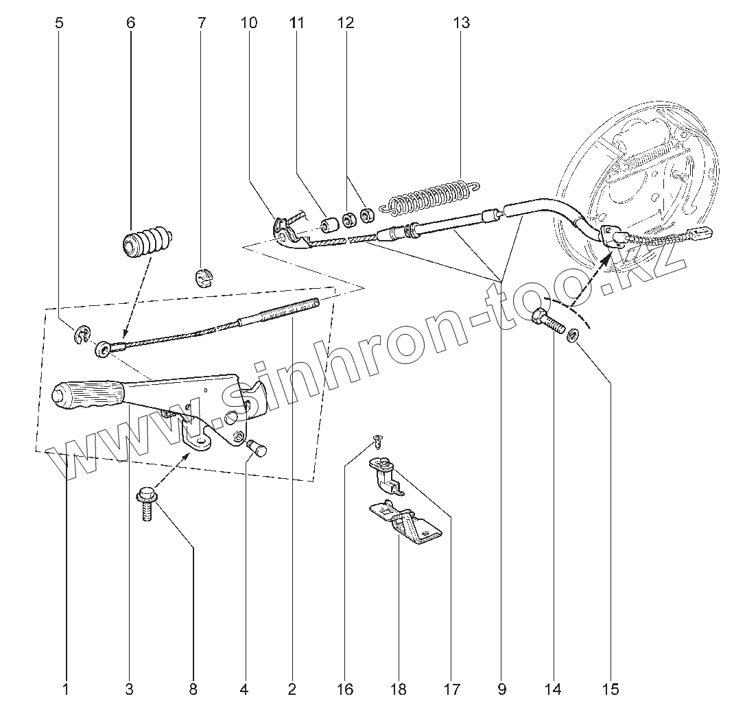 Каталог запасных частей к технике: ВАЗ Chevrolet Niva. Привод стояночного тормоза