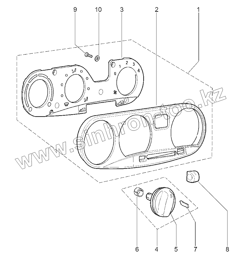Облицовка рычагов управления отопителем в сборе