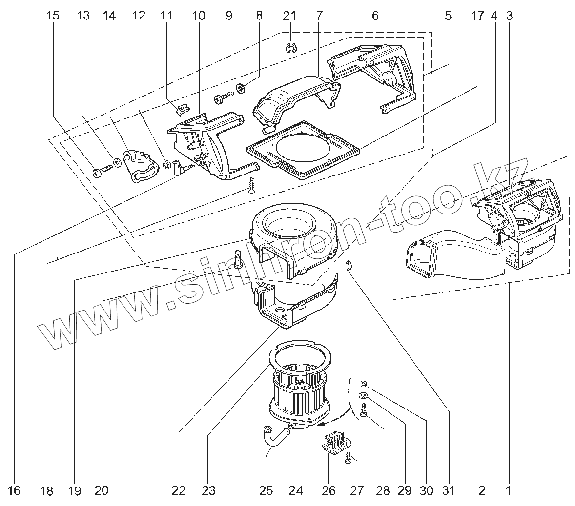 Улитка вентилятора верхняя в сборе