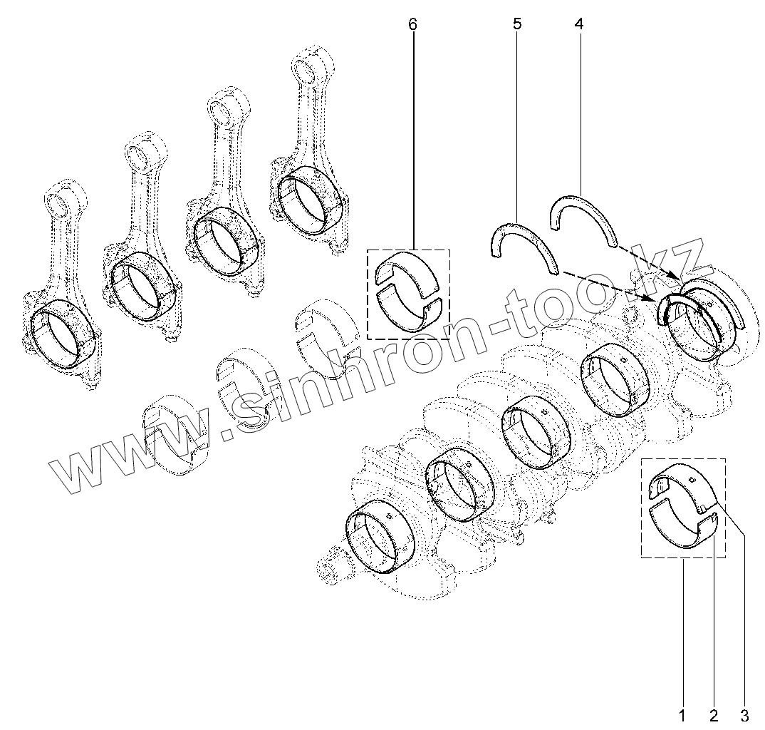 Вкладыш 1-го, 2-го,4-го и 5-го подшипников вала коленчатого нижний