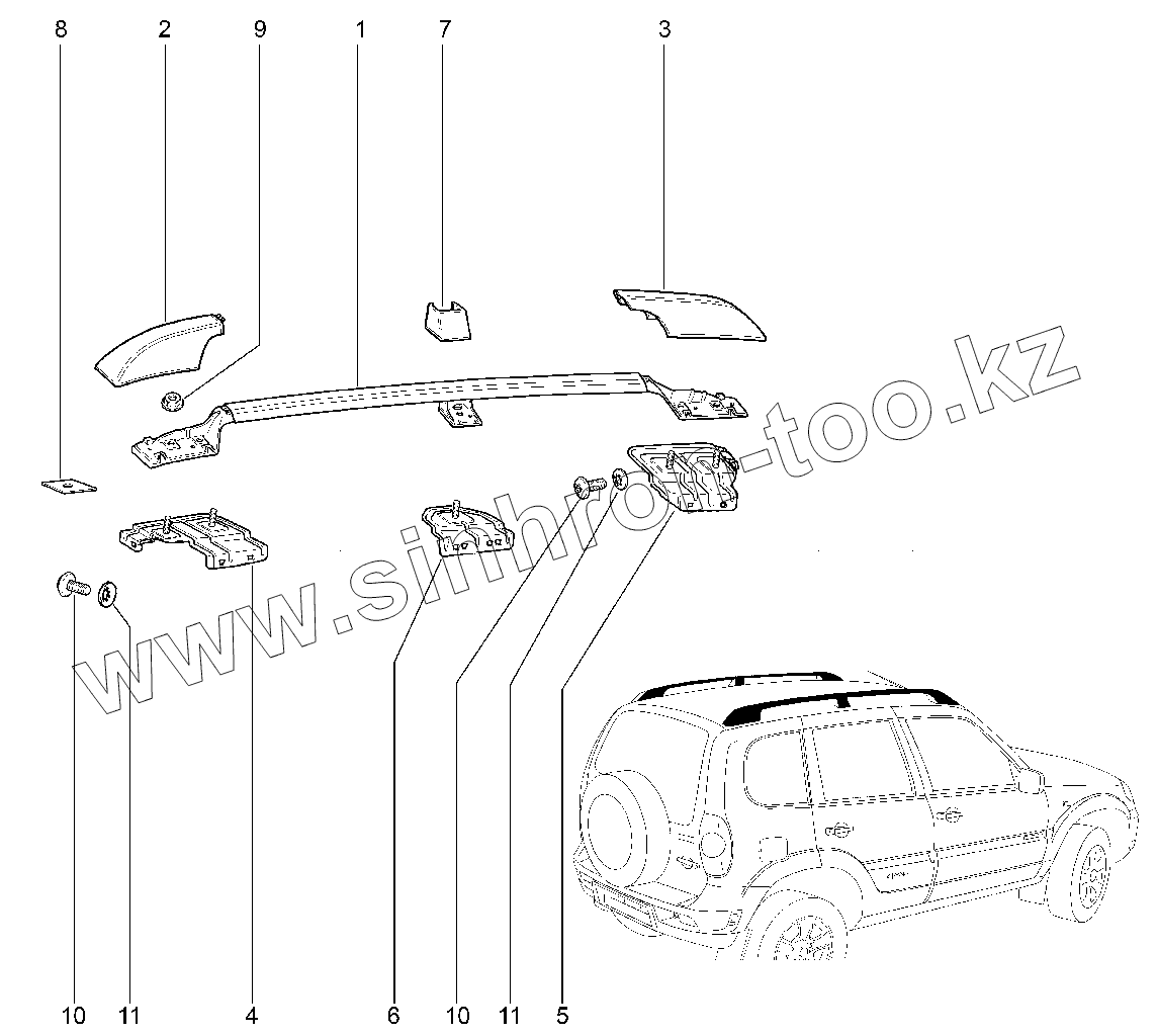 Каталог запасных частей к технике: ВАЗ Chevrolet Niva. 590110. Ложемент багажника