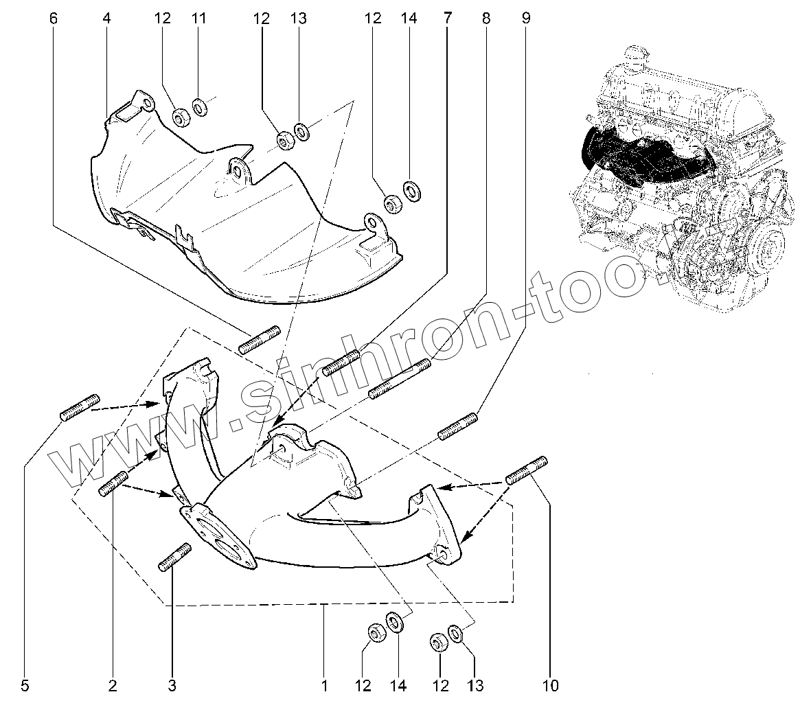 Каталог запасных частей к технике: ВАЗ LADA 2123. Коллектор выпускной