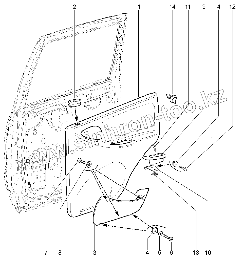 Каталог запасных частей к технике: ВАЗ LADA 2123. Обивка задних дверей