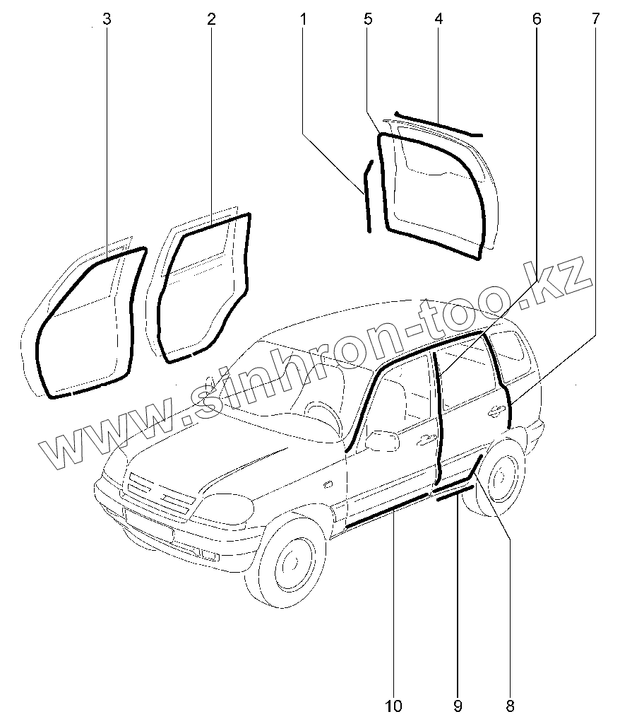 Каталог запасных частей к технике: ВАЗ LADA 2123. Уплотнители дверей