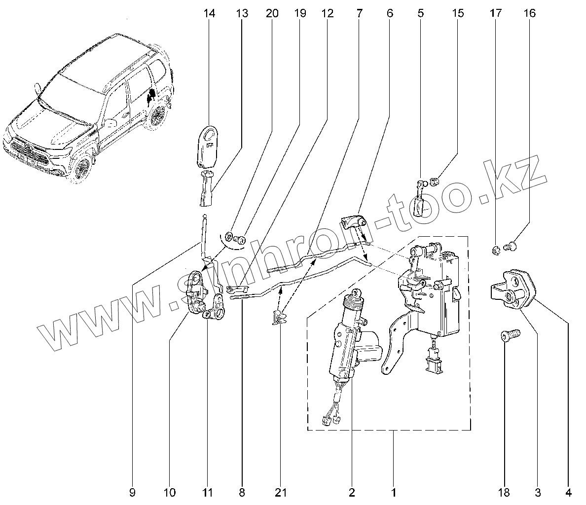 Каталог запасных частей к технике: ВАЗ LADA 2123. Замки задних дверей