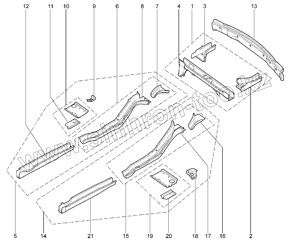 Каталог запасных частей к технике: ВАЗ LADA 2123. 413110. Каркас основания кузова
