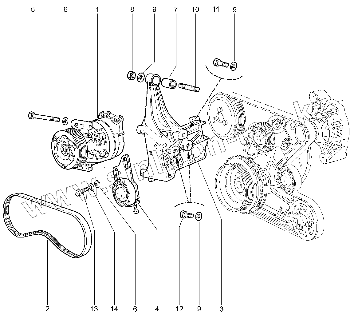 Каталог запасных частей к технике: ВАЗ LADA 2123. 119310. Привод компрессора кондиционера
