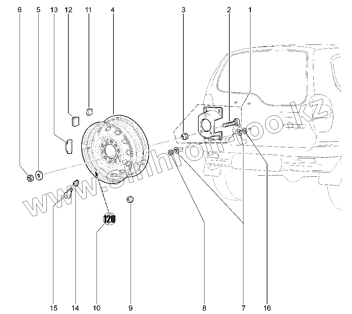 Каталог запасных частей к технике: ВАЗ LADA 2123. 333110. Держатель и запасное колесо
