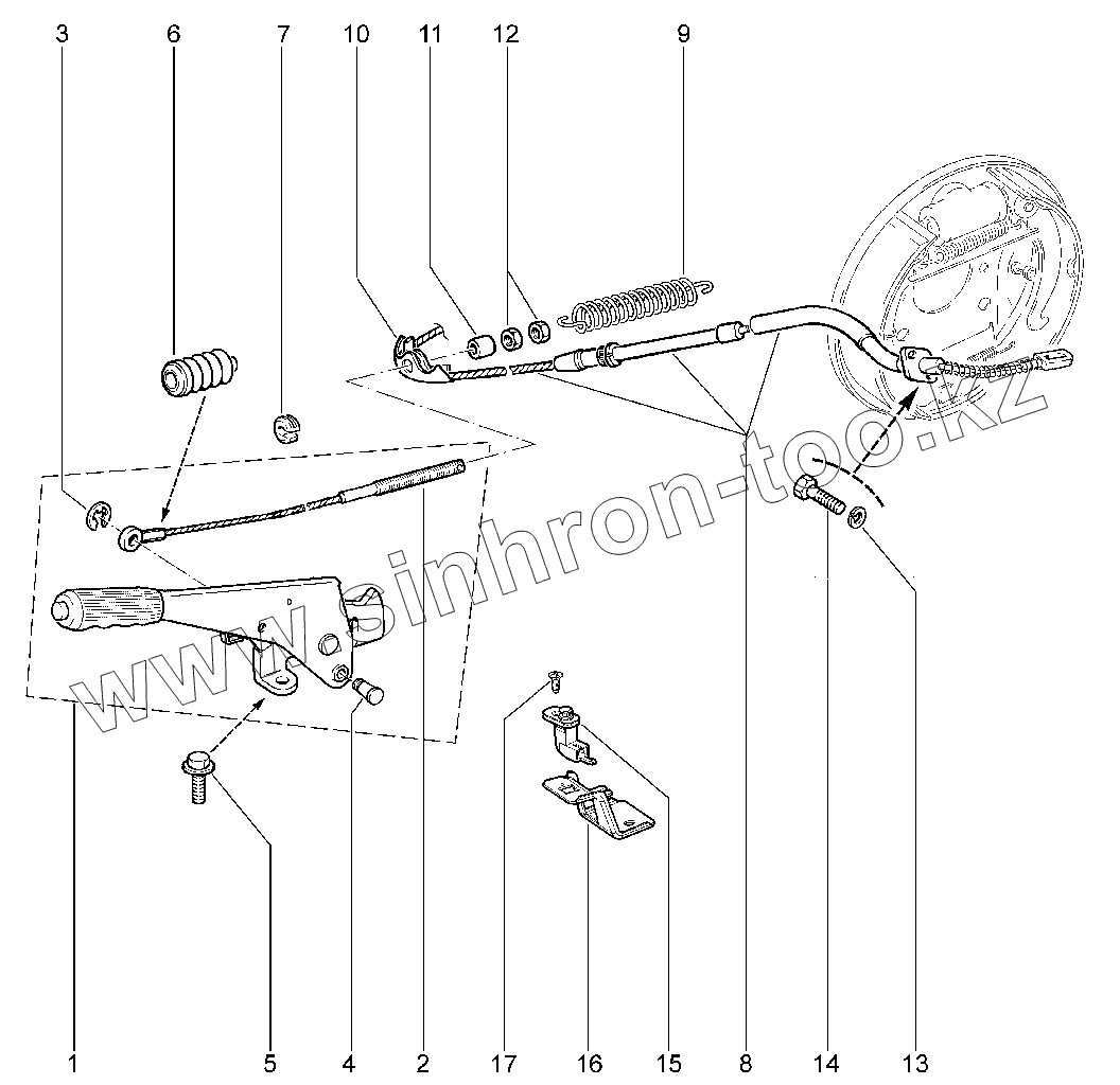 Каталог запасных частей к технике: ВАЗ LADA 2123. 347110. Привод стояночного тормоза
