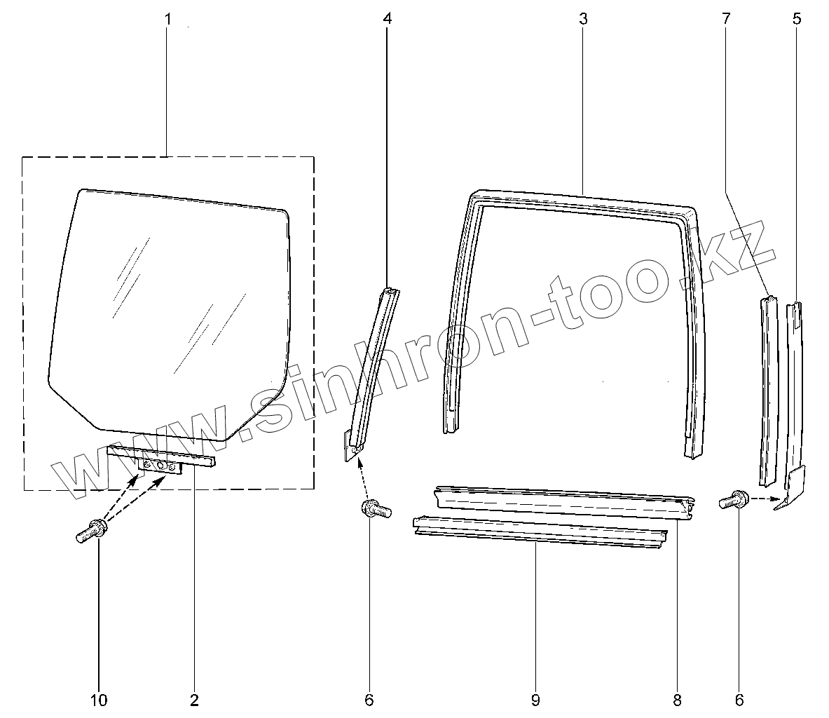 Каталог запасных частей к технике: ВАЗ LADA 2123. 472110. Стекла задних дверей