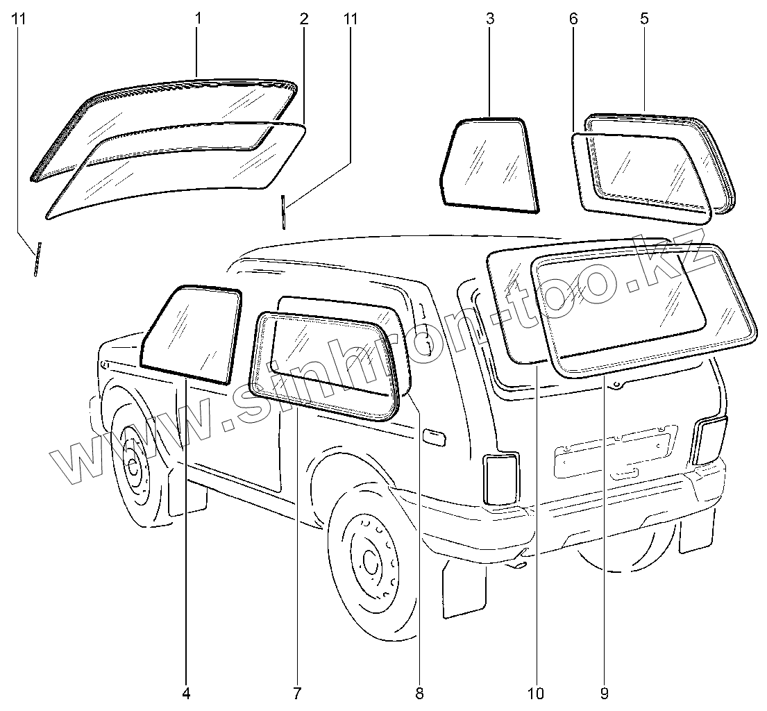 Каталог запасных частей к технике: ВАЗ LADA 21314. 470110. Стекла (21214)
