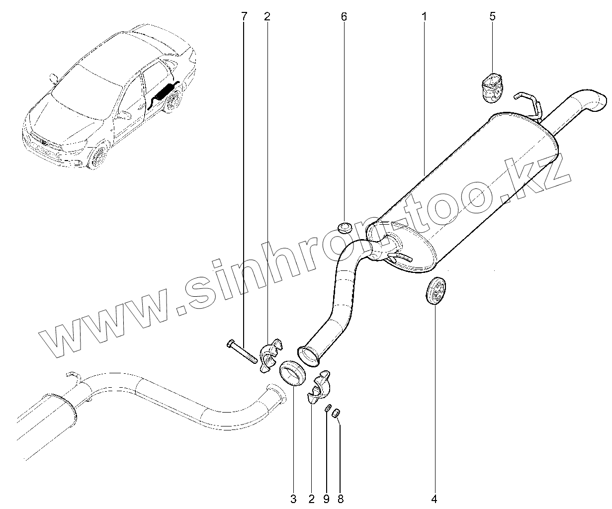 Каталог запасных частей к технике: ВАЗ LADA 2190 (Sedan). 142110. Глушитель основной