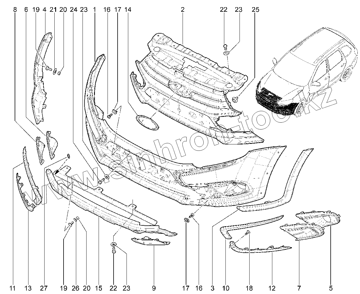 Каталог запасных частей к технике: ВАЗ LADA 2190 (Sedan). 500210. Бампер передний (Cross)