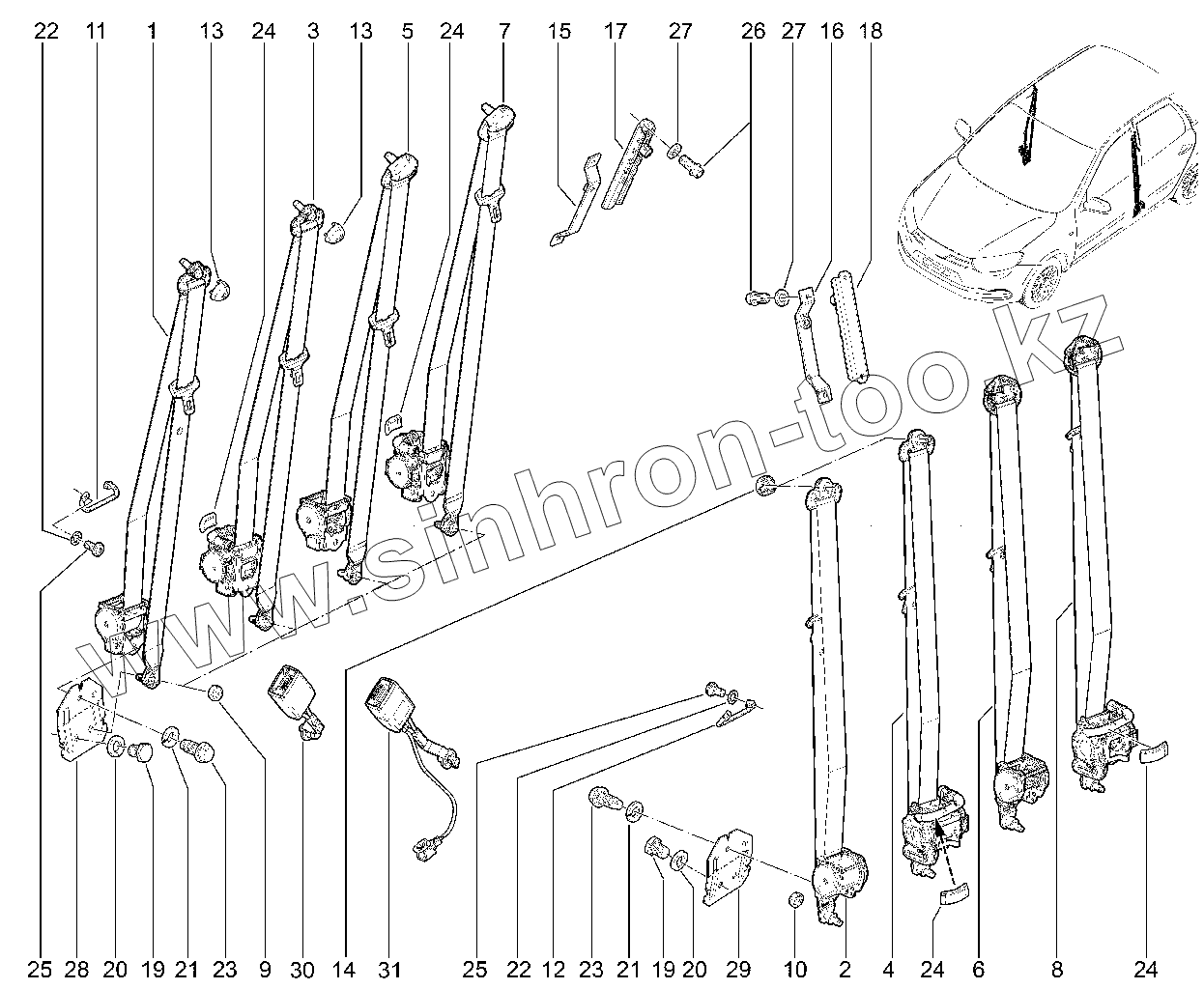 Каталог запасных частей к технике: ВАЗ LADA 2190 (Sedan). 550210. Ремни безопасности передние