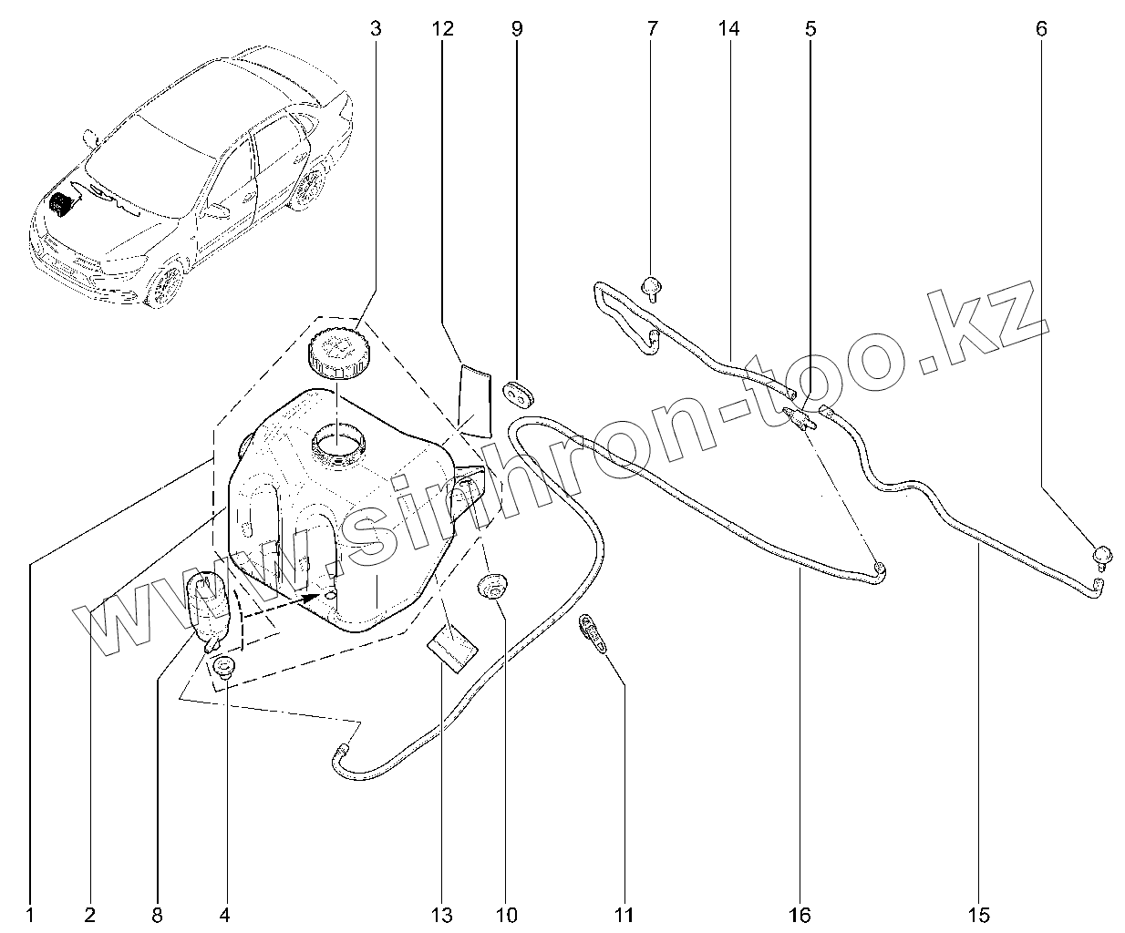 Каталог запасных частей к технике: ВАЗ LADA 2190 (Sedan). 852110. Омыватель (седан)