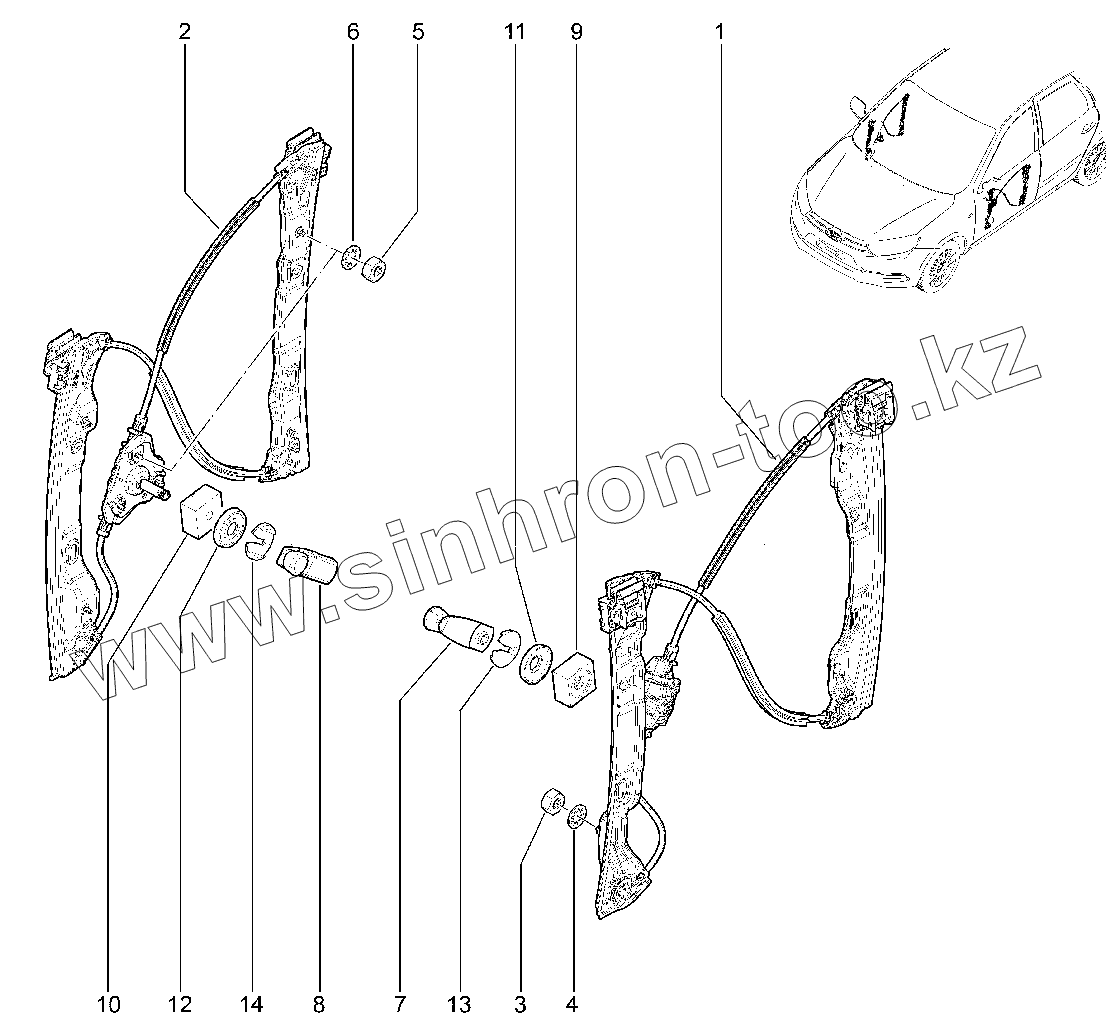 Каталог запасных частей к технике: ВАЗ LADA 2191 (Liftback). 472010. Механические стеклоподъемники передних дверей