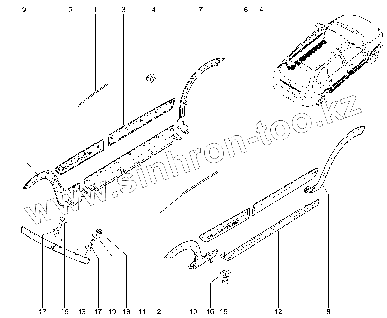 Каталог запасных частей к технике: ВАЗ LADA 2191 (Liftback). 502410. Молдинги, накладки (Cross)