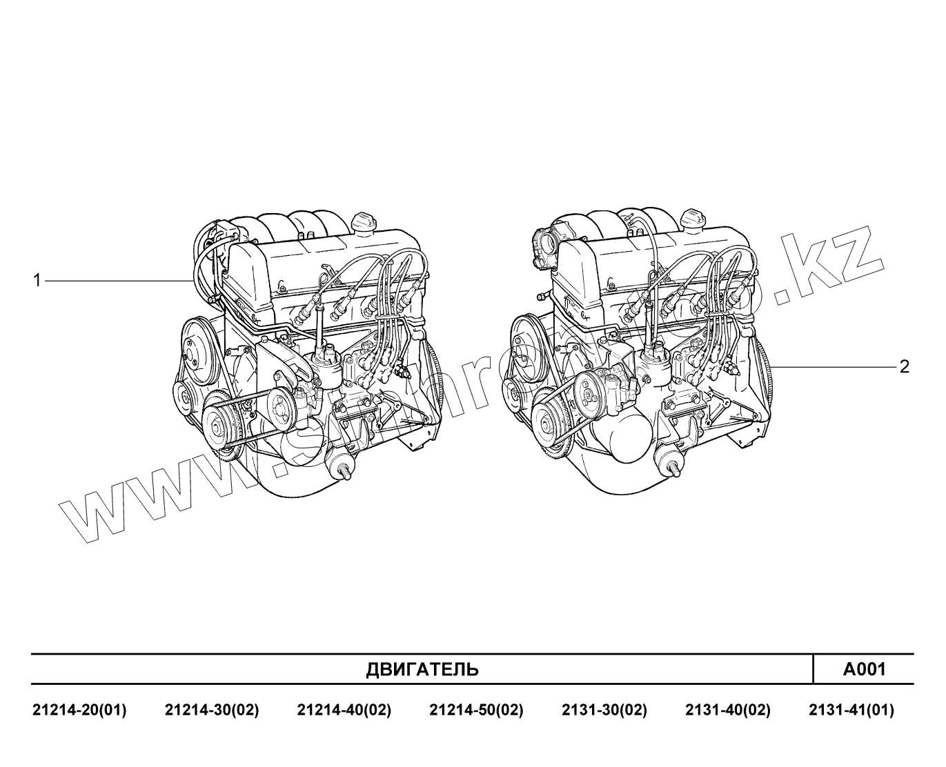 Каталог запасных частей к технике: ВАЗ LADA 4x4. A001. Двигатель