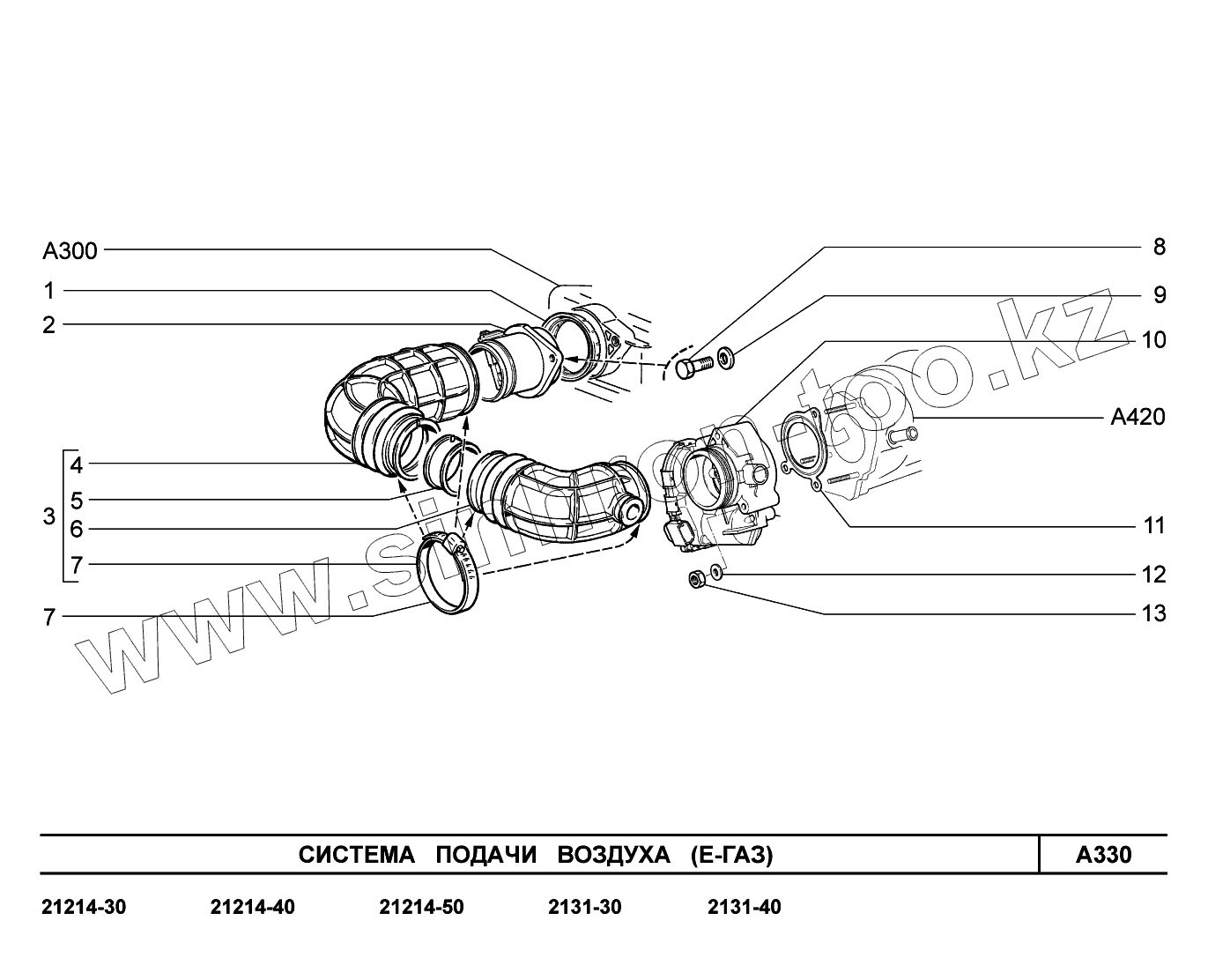 Каталог запасных частей к технике: ВАЗ LADA 4x4. A330. Система подачи воздуха