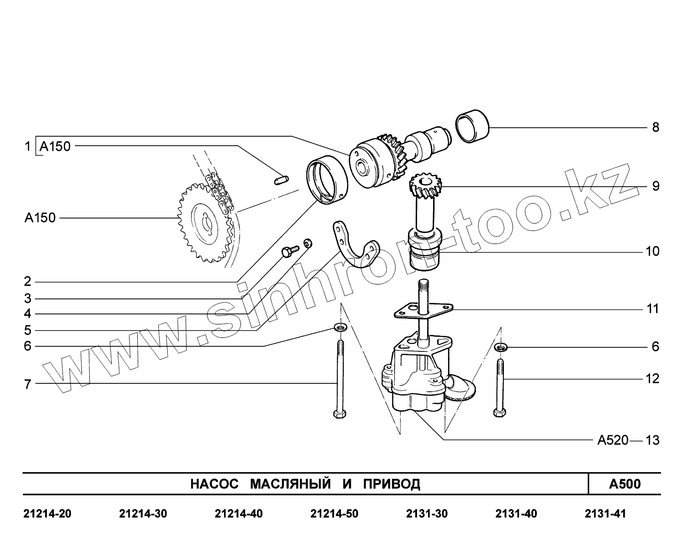 Каталог запасных частей к технике: ВАЗ LADA 4x4. A500. Насос масляный и привод