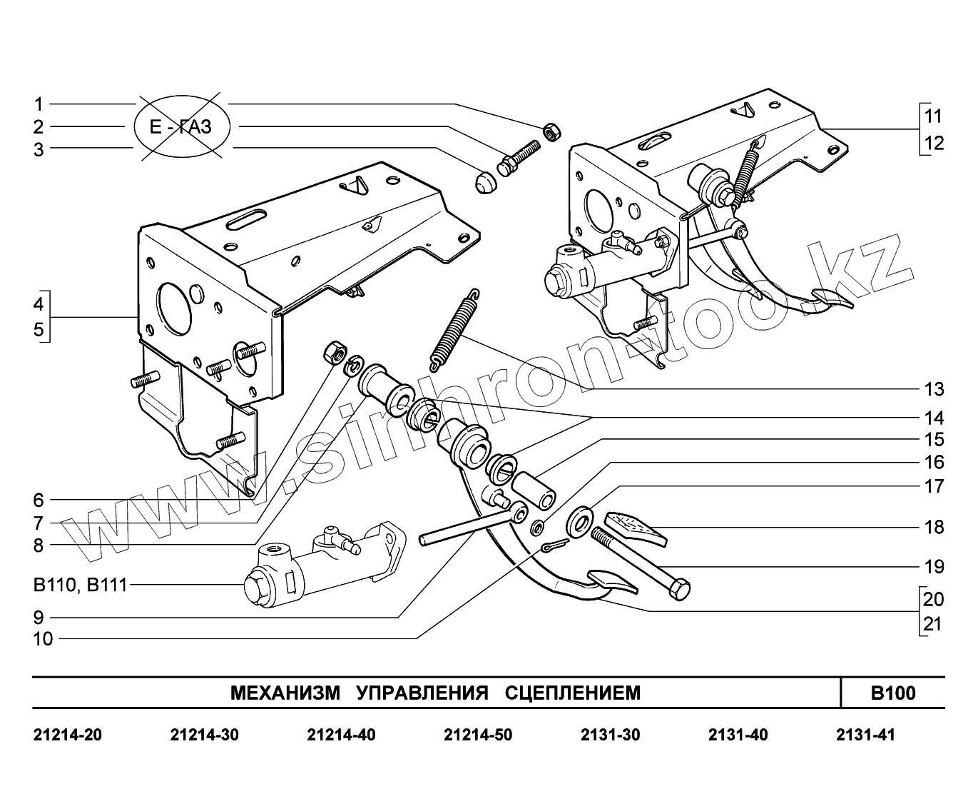 Каталог запасных частей к технике: ВАЗ LADA 4x4. B100. Механизм управления сцеплением