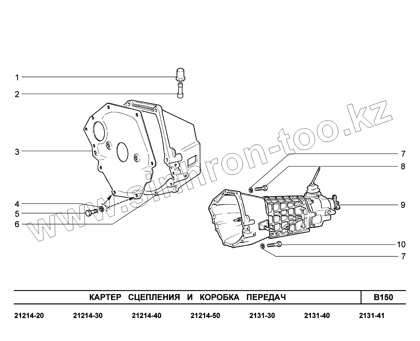 Каталог запасных частей к технике: ВАЗ LADA 4x4. B150. Картер сцепления и коробка передач