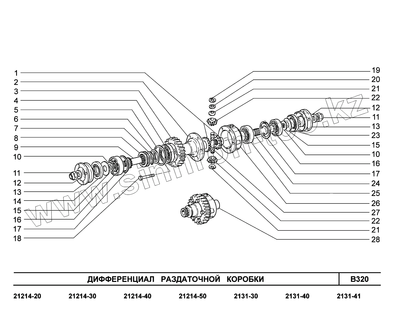 Каталог запасных частей к технике: ВАЗ LADA 4x4. B320. Дифференциал раздаточной коробки