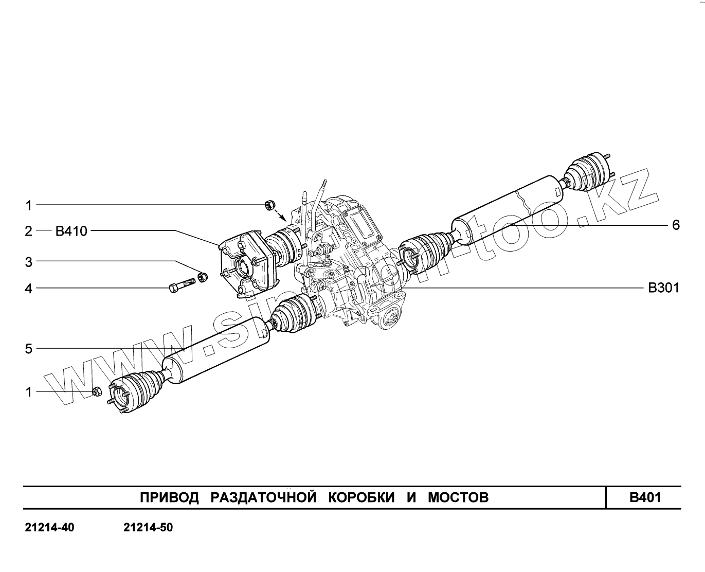 Каталог запасных частей к технике: ВАЗ LADA 4x4. B401. Привод раздаточной коробки и мостов