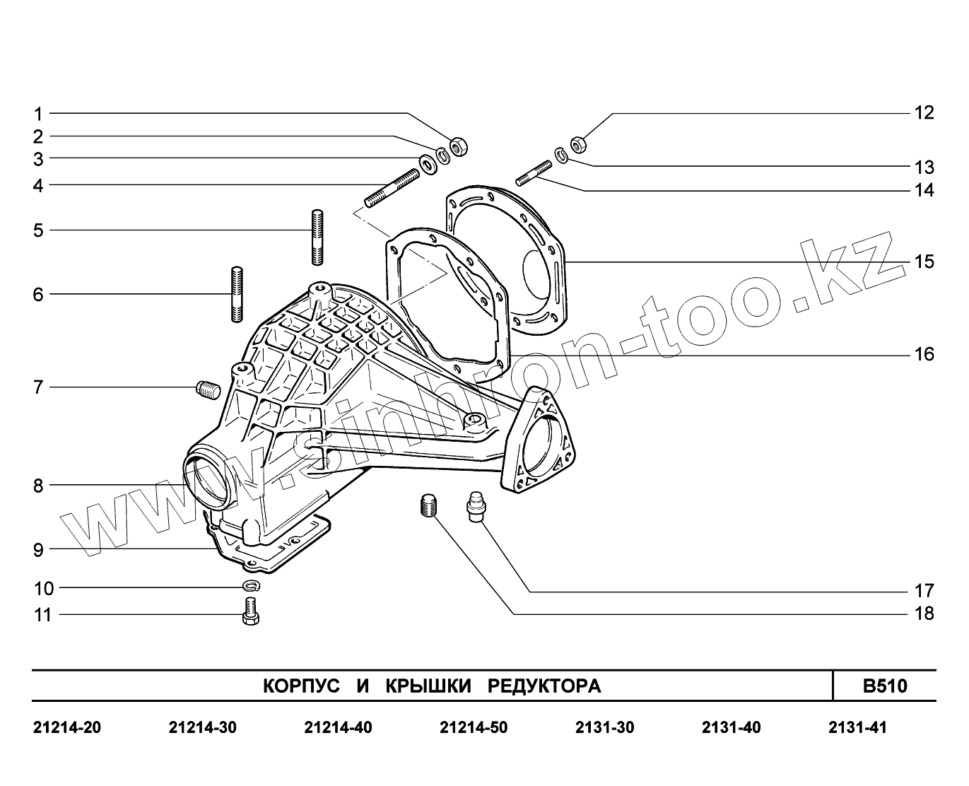 Каталог запасных частей к технике: ВАЗ LADA 4x4. B510. Корпус и крышки редуктора