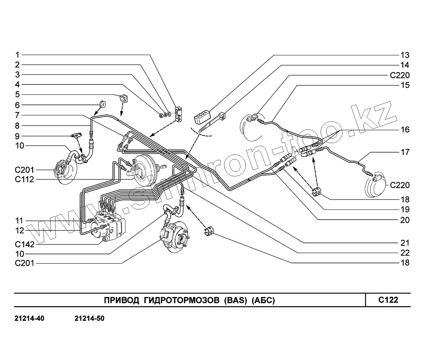 Каталог запасных частей к технике: ВАЗ LADA 4x4. C122. Привод гидротормозов
