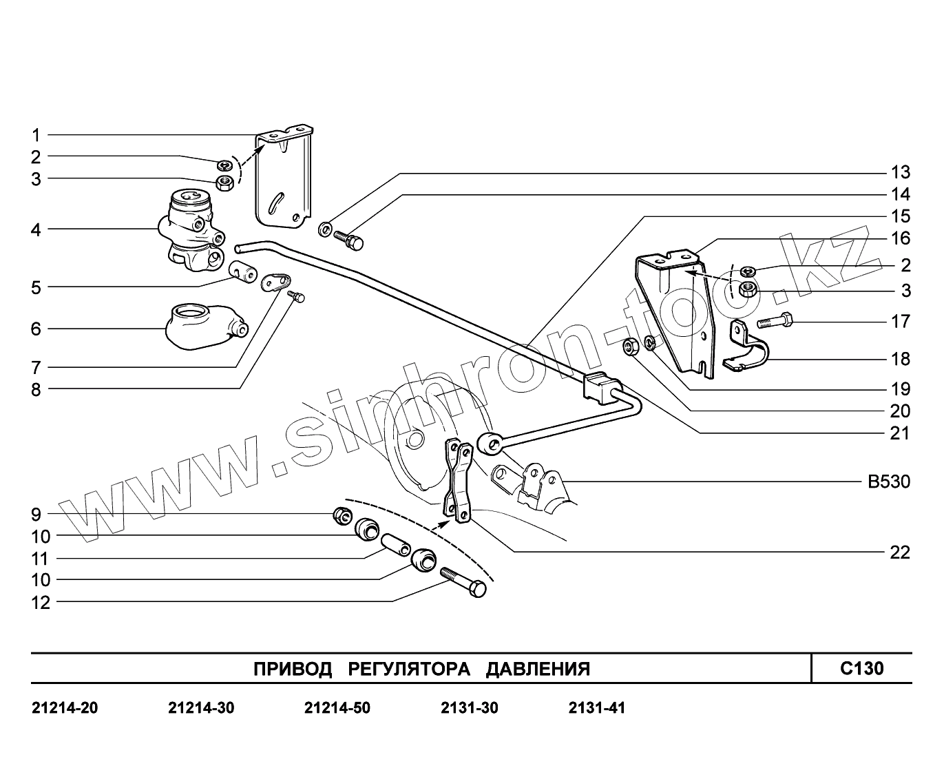 Каталог запасных частей к технике: ВАЗ LADA 4x4. C130. Привод регулятора давления