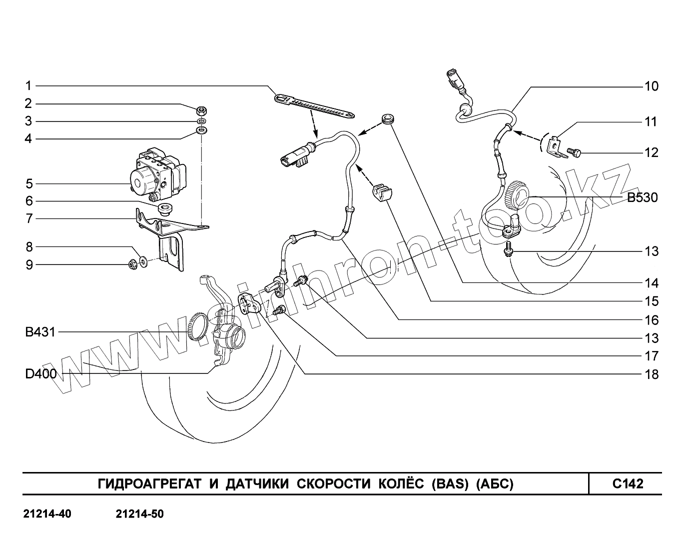 Каталог запасных частей к технике: ВАЗ LADA 4x4. C142. Гидроагрегат и датчики скорости колес