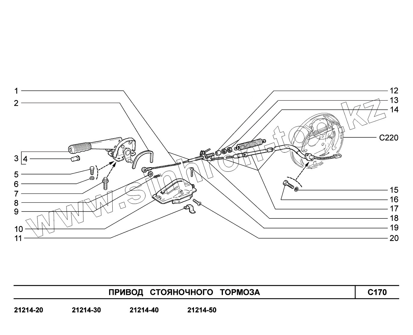 Каталог запасных частей к технике: ВАЗ LADA 4x4. C170. Привод стояночного тормоза