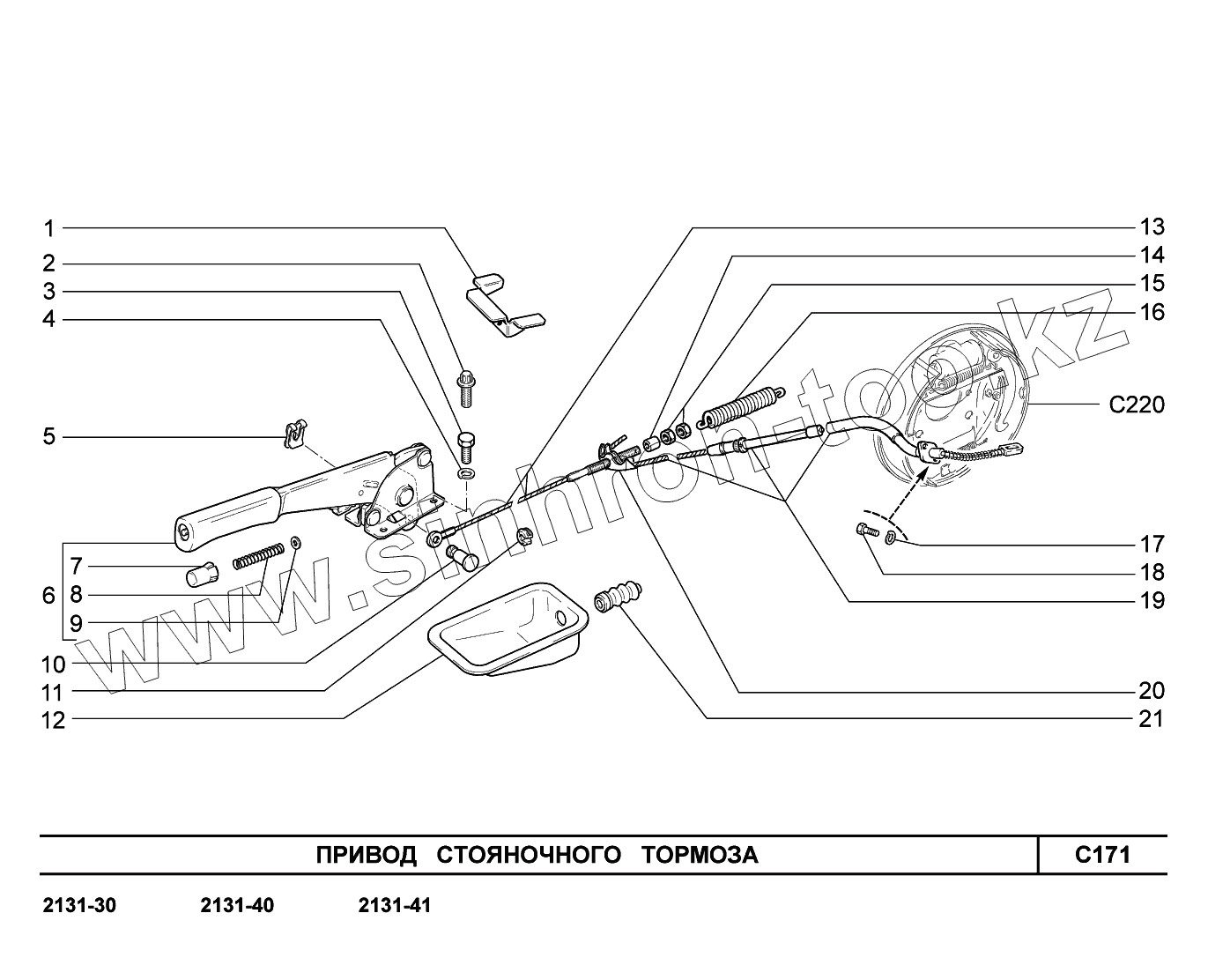 Каталог запасных частей к технике: ВАЗ LADA 4x4. C171. Привод стояночного тормоза