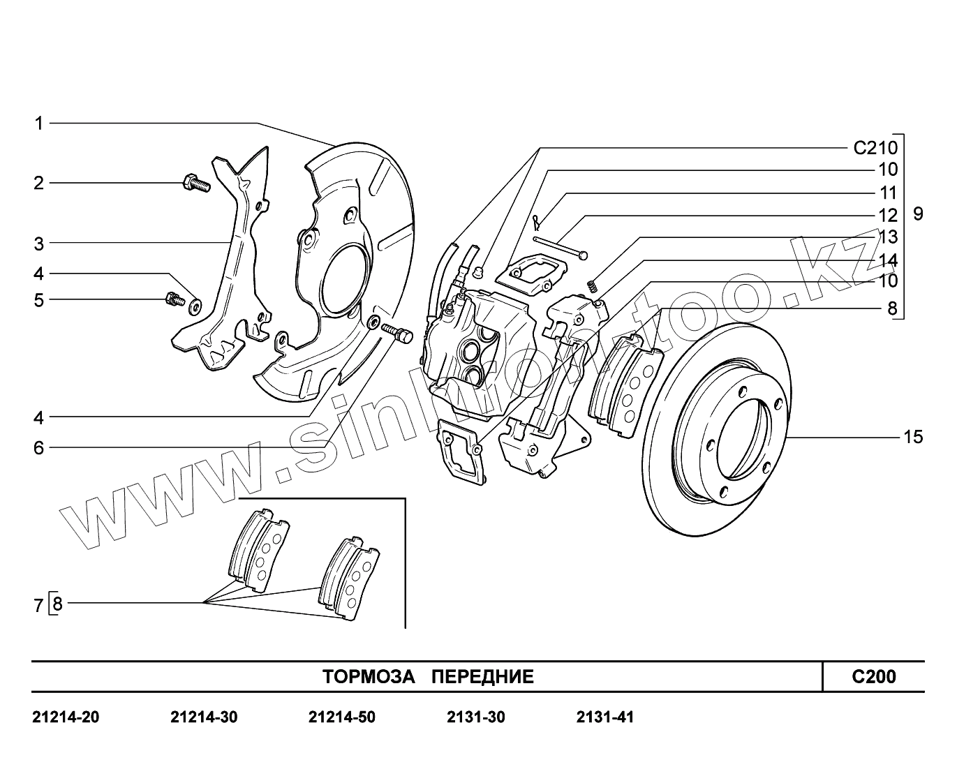 Каталог запасных частей к технике: ВАЗ LADA 4x4. C200. Тормоза передние