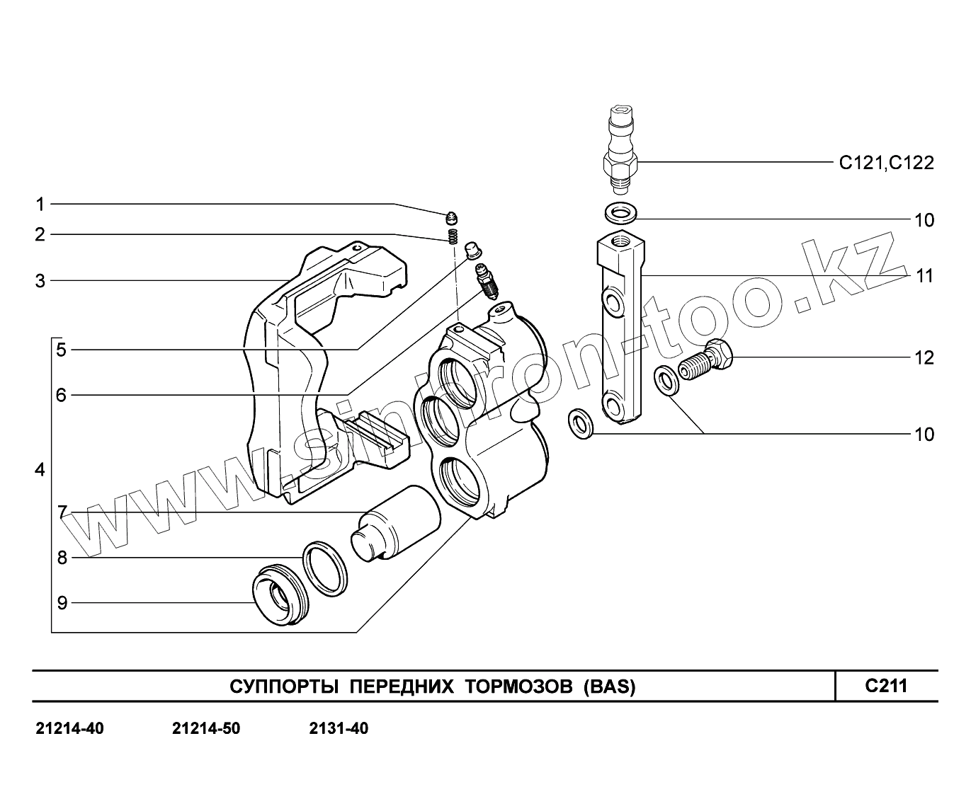 Каталог запасных частей к технике: ВАЗ LADA 4x4. C211. Суппорты передних тормозов