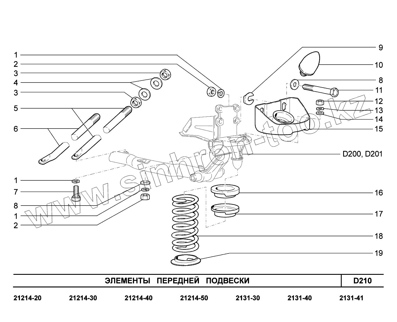 Каталог запасных частей к технике: ВАЗ LADA 4x4. D210. Элементы передней подвески