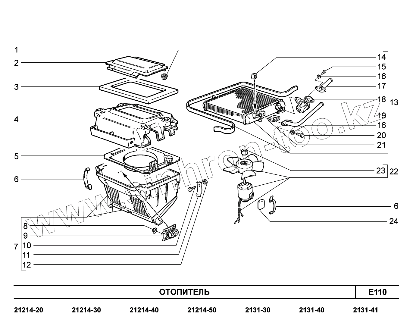 Каталог запасных частей к технике: ВАЗ LADA 4x4. E110. Отопитель