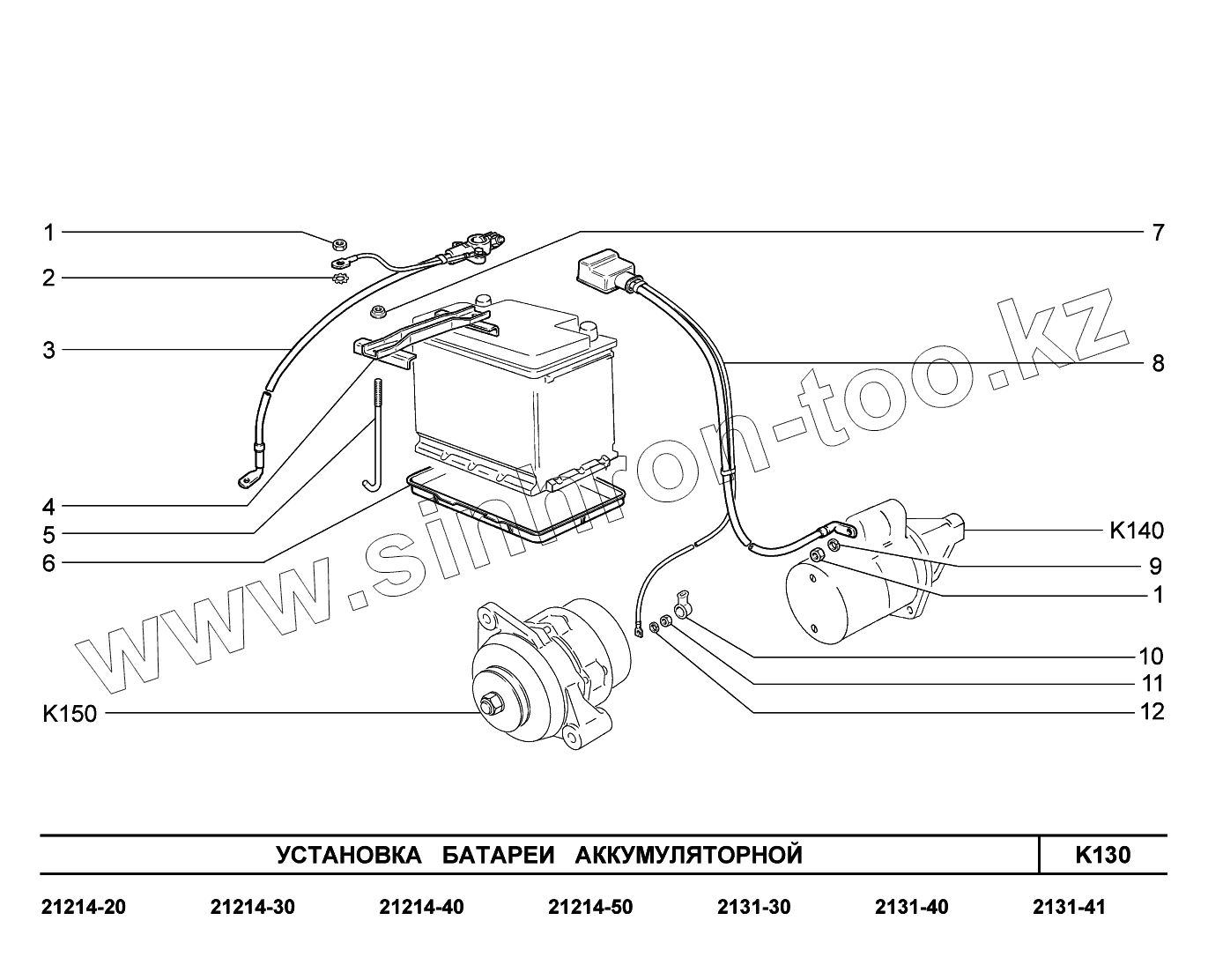 Каталог запасных частей к технике: ВАЗ LADA 4x4. K130. Установка батареи аккумуляторной